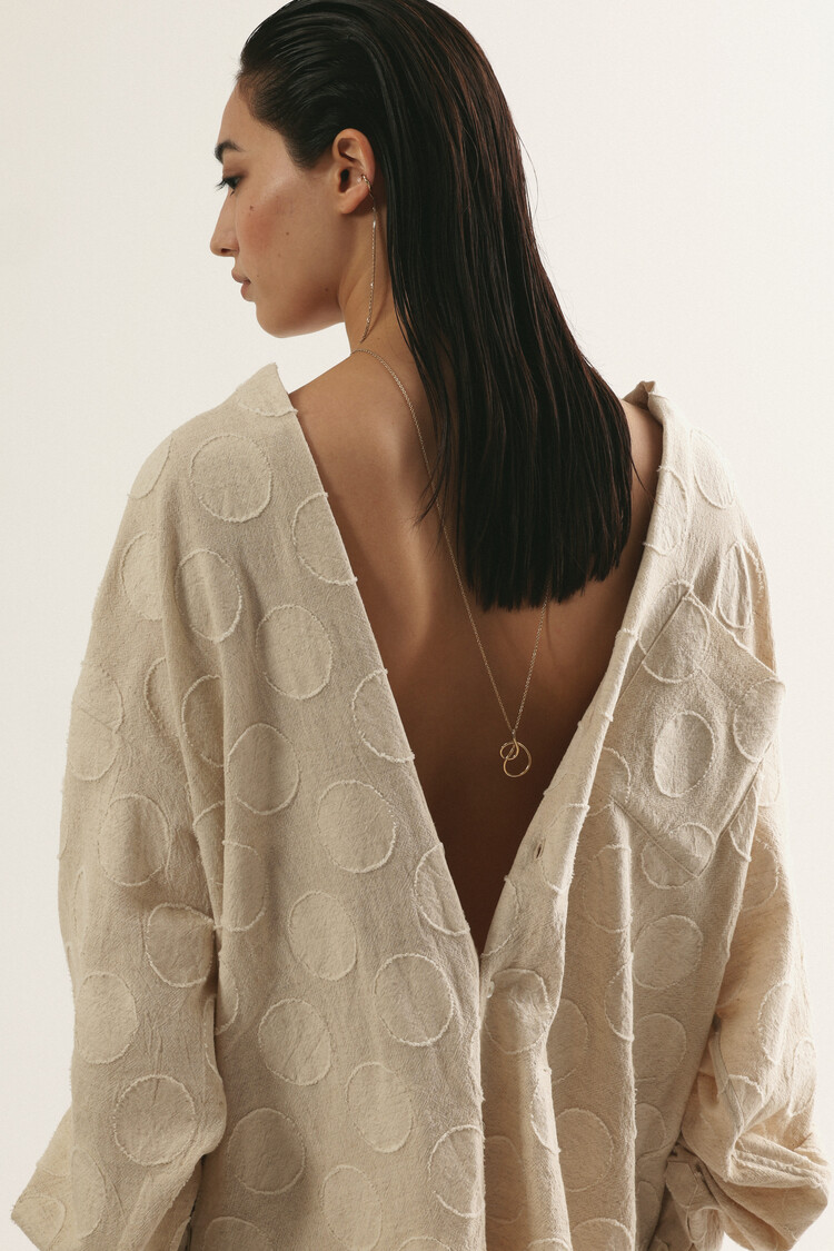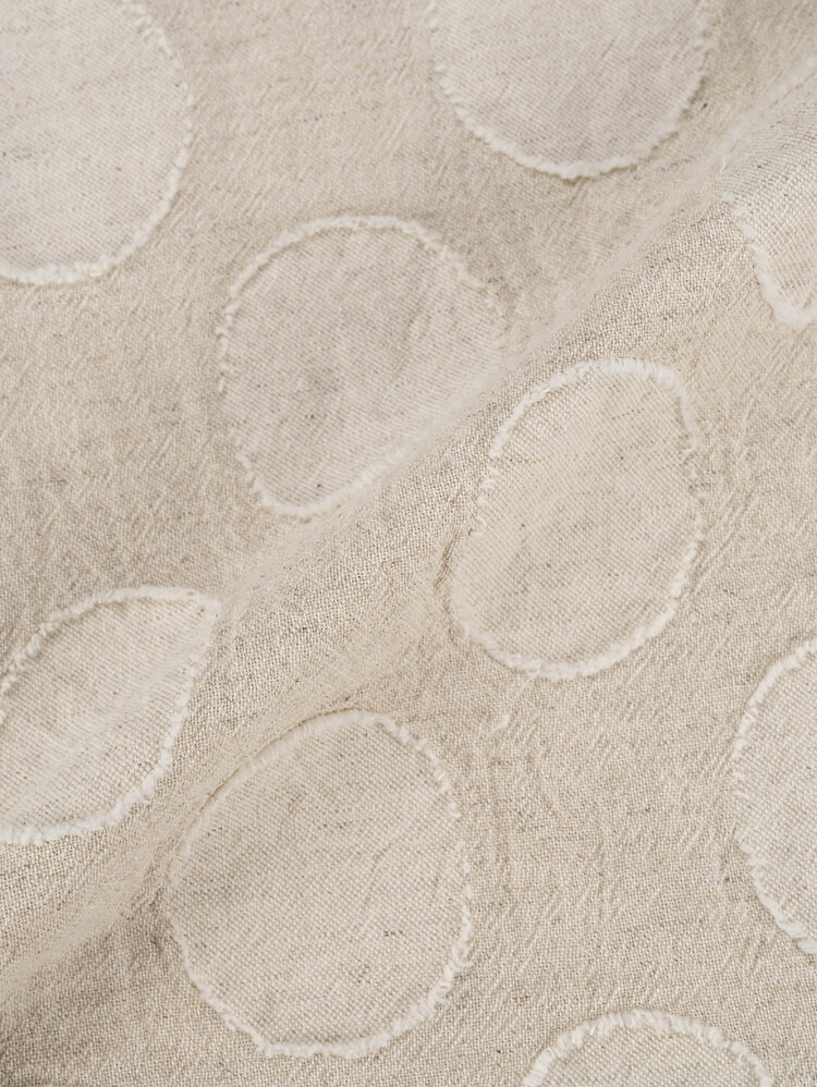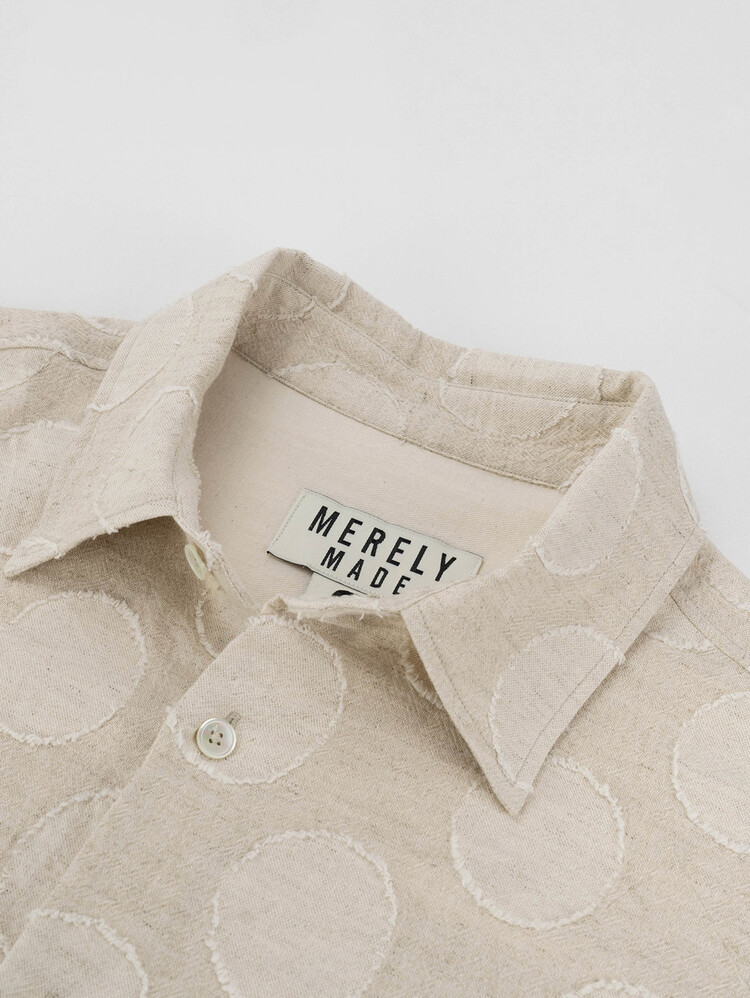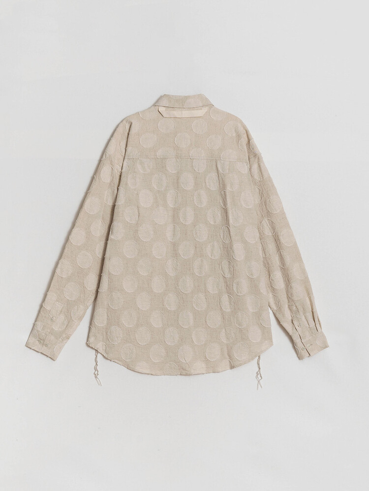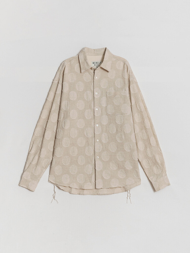 This is the 'VINTAGE JACQUARD OVER SIZE SHIRT', available in its 4th edition this season, this time inspired by vintage clothing. Linen blended cotton fabric with a round jacquard pattern from Japan's 'KOYAMA' provides an extremely natural feel and texture. The wide and elegant silhouette suggests effortless stylish styling.