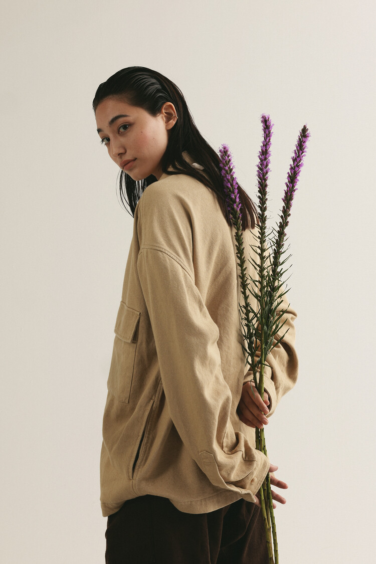 'THAI MASSAGE PANTS'와 SET-UP으로 제안되는 'VINTAGE WORK JACKET' 입니다. 일본 'KOYAMA'사의 도톰한 빈티지 개버딘 원단을 베이스로 스텐다드한 디자인 디테일을 채택하여 범용성이 우수하고, 가슴에 큼지막한 두개의 패치포켓과 사이드에 슬릿 포켓까지 총 4개의 포켓은 안정된 수납을 보장 합니다. 후가공 워싱을 적용하여 원단의 텍스쳐와 터치감이 케쥬얼하면서도 네츄럴하게 표현되었습니다.